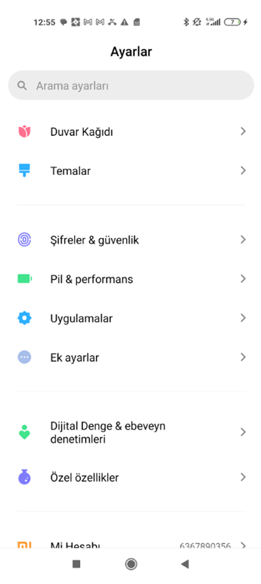 - Cihazınızın ayarlarını açın.