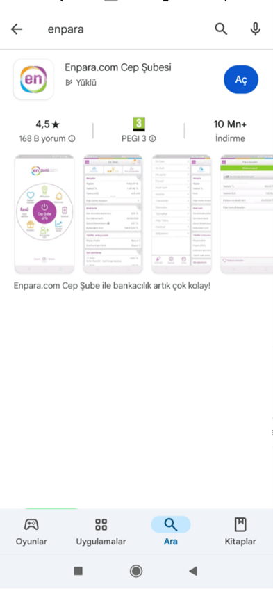 - Uygulama listesinde Enpara sözcüğü aratın.