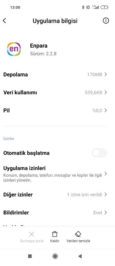 - Listelenen Enpara.com Cep Şube uygulamalarının (Enpara ikonu olan veya MI ikonu olan) hepsini kaldırın.
