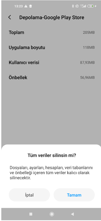 - "Verileri temizle” seçimine dokunun.